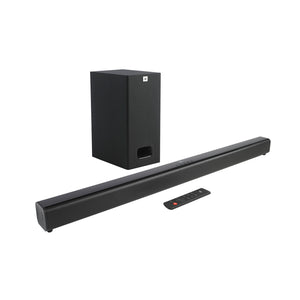 The JBL Cinema SB130 features 110W system power, Dolby Digital, two full range drivers and comes with a wired subwoofer. Enjoy powerful sound with extra deep bass for movies and music entertainment. It’s Bluetooth-enabled so you can play your favorite music wirelessly from any smartphone, tablet or laptop and features a one cable connection with HDMI ARC that ensures a hassle-free user experience.